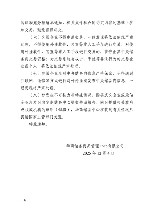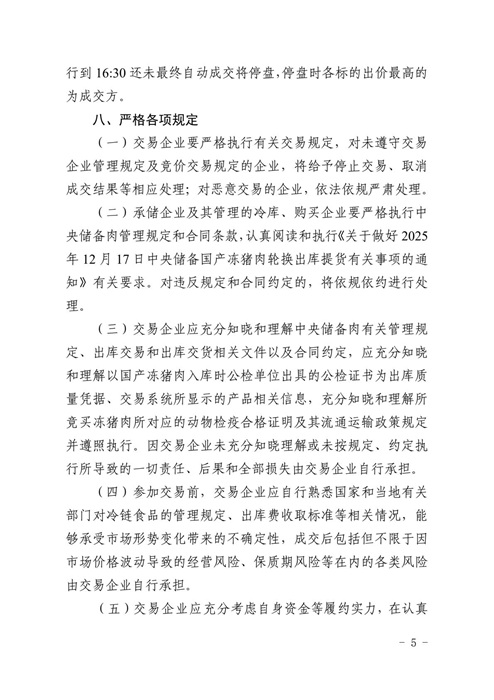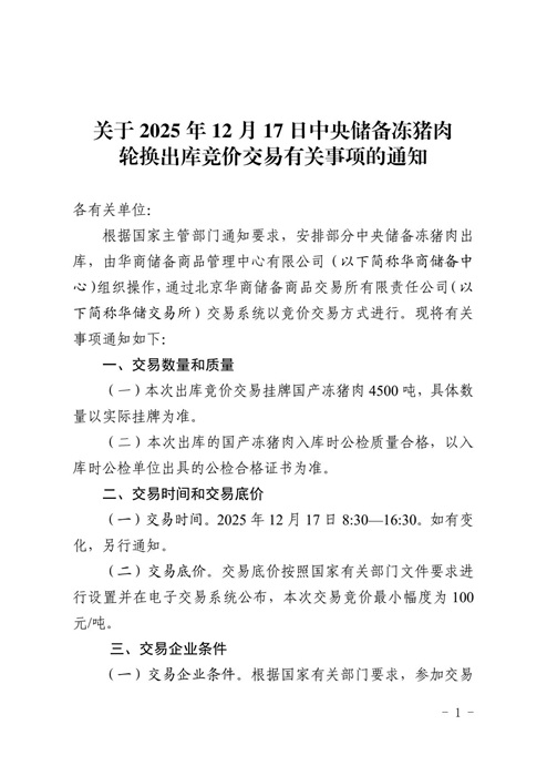 關于2025年12月17日中央儲備凍豬肉輪換出庫競價交易有關事項的通知